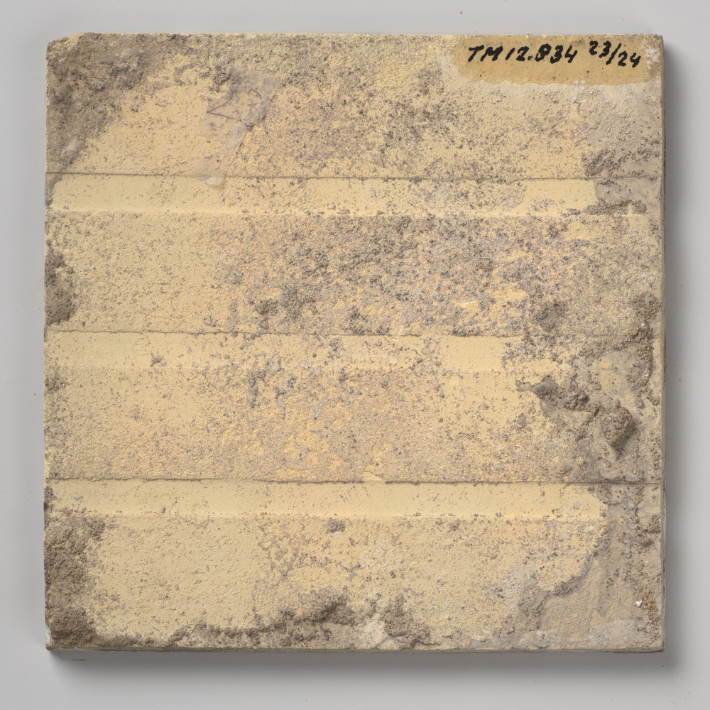 tegel van keramiek, deels gesjabloneerd op een gespr...