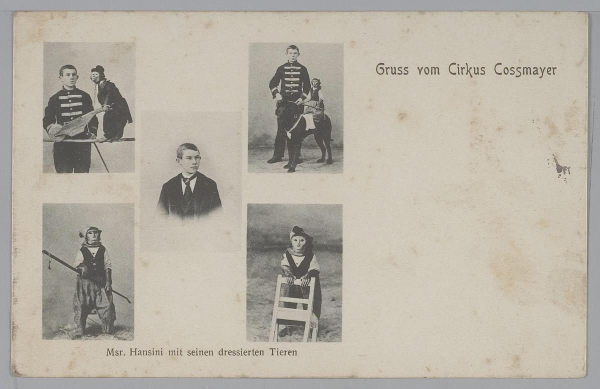 Gruss vom Cirkus Cossmayer. Msr. Hansini mit seinen ...