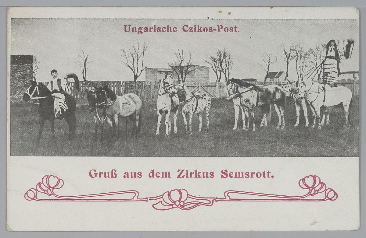 Ungarische Czikos Post. Gruss aus dem Zirkus Semsrott