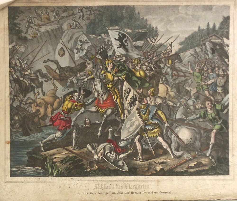 Litho, voorstellend de Slag bij Morgarten, waarin de...