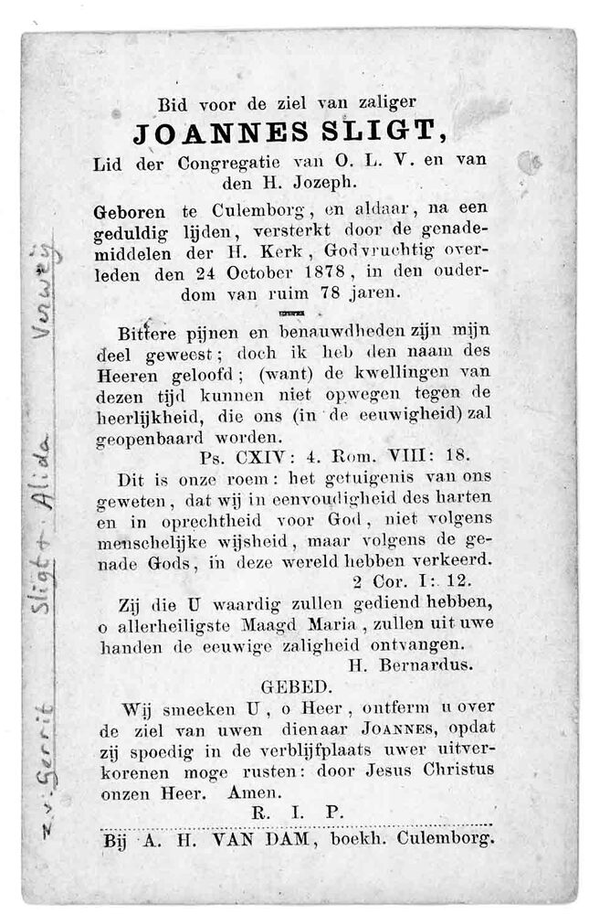 bidprent voor Joannes Kuijer. Geboren 13-10-1819 te ...