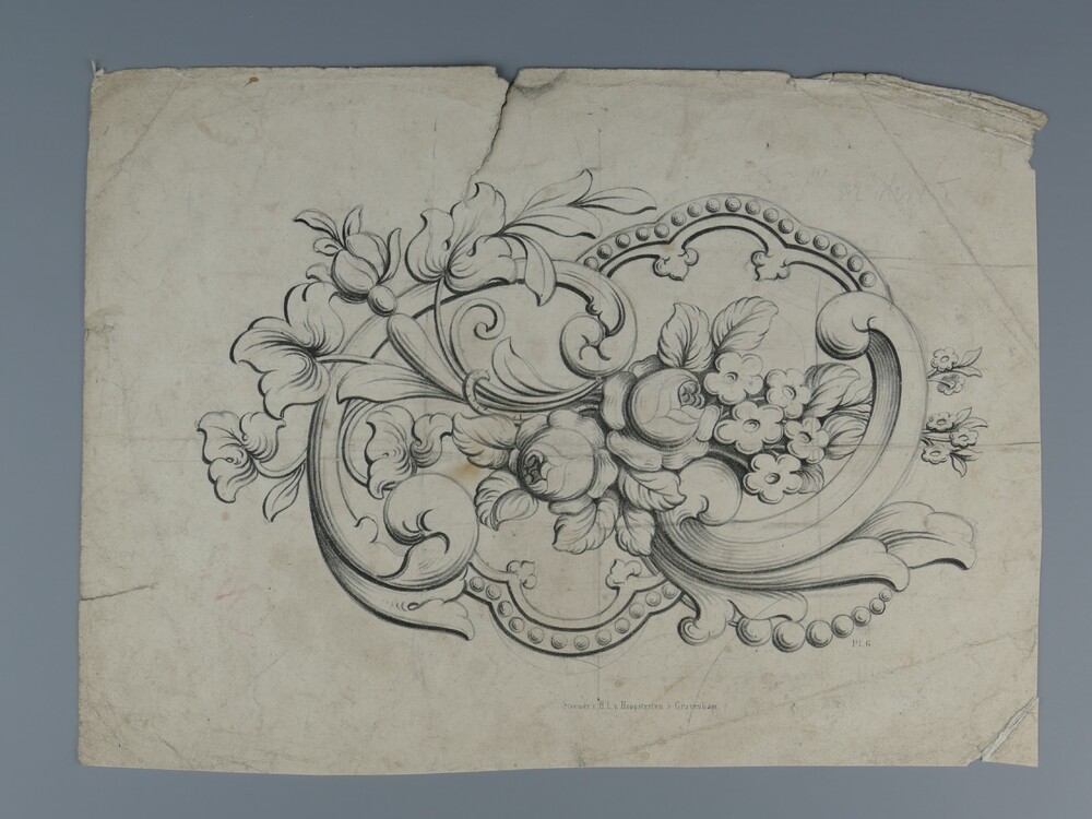 Litho, voorstellende ranken met bloemmotief, circa 1870