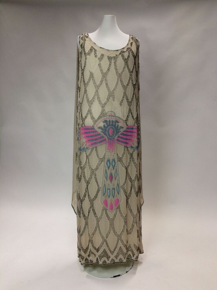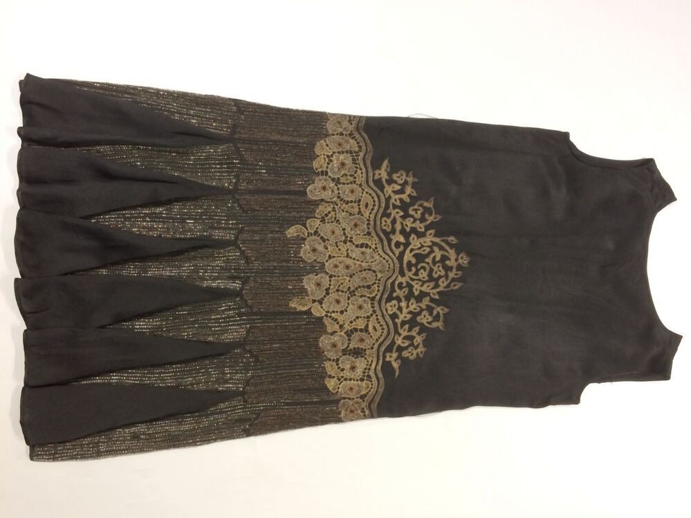 Charlestonjurk van zwarte zijde met metaaldraadbordu...