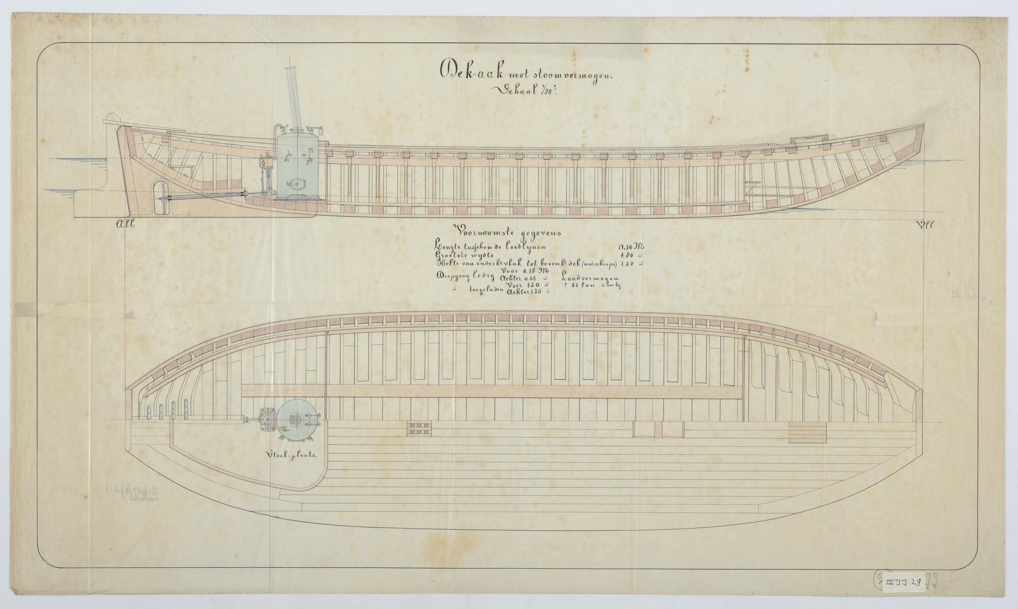 Lijnenplan van een dekaak met stoomvermogen