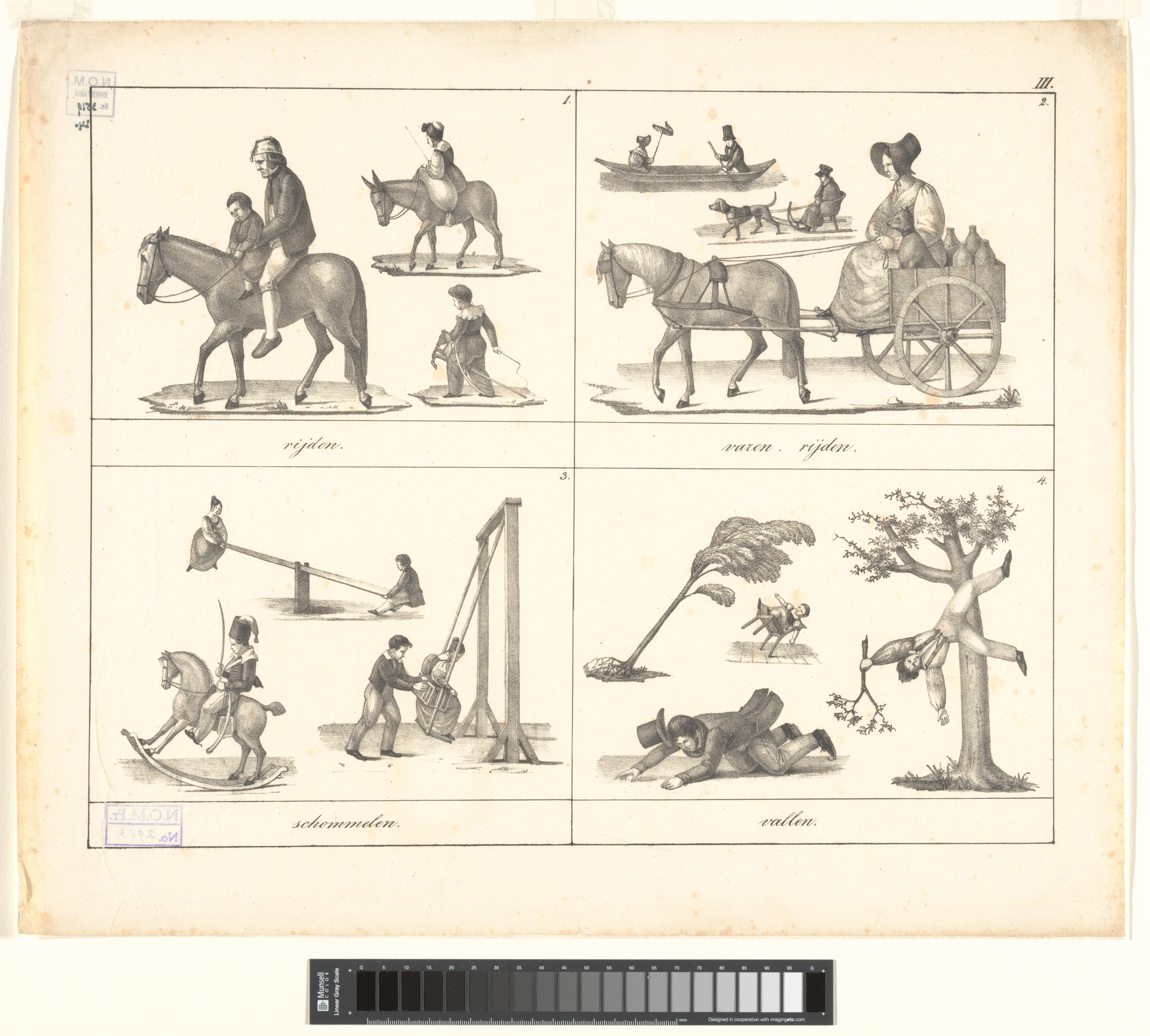 Onderwijsprent met diverse bewegingen. - III.