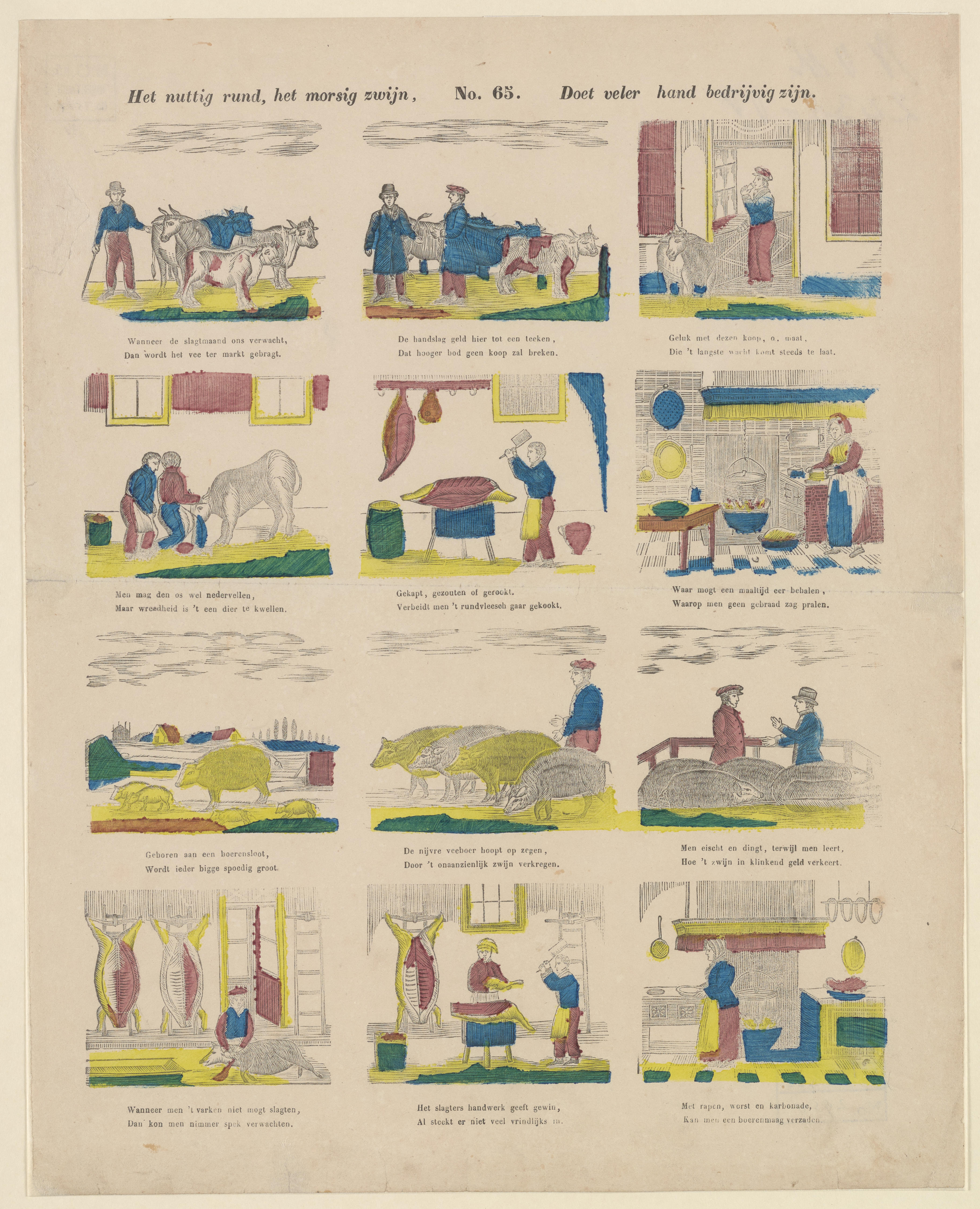 Het nuttig rund, het morsig zwijn, / Doet veler hand...