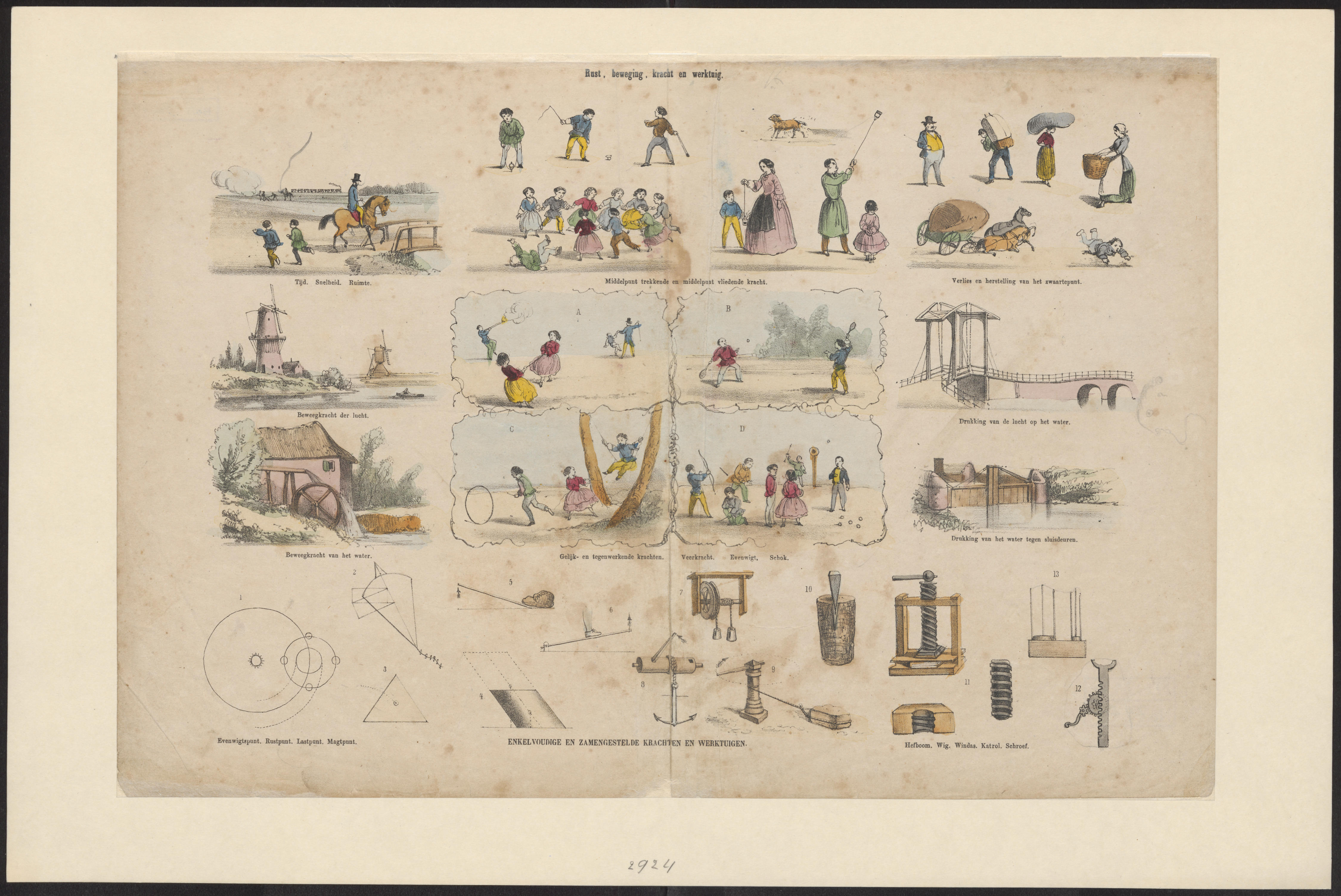 Rust, beweging, kracht en werktuig.