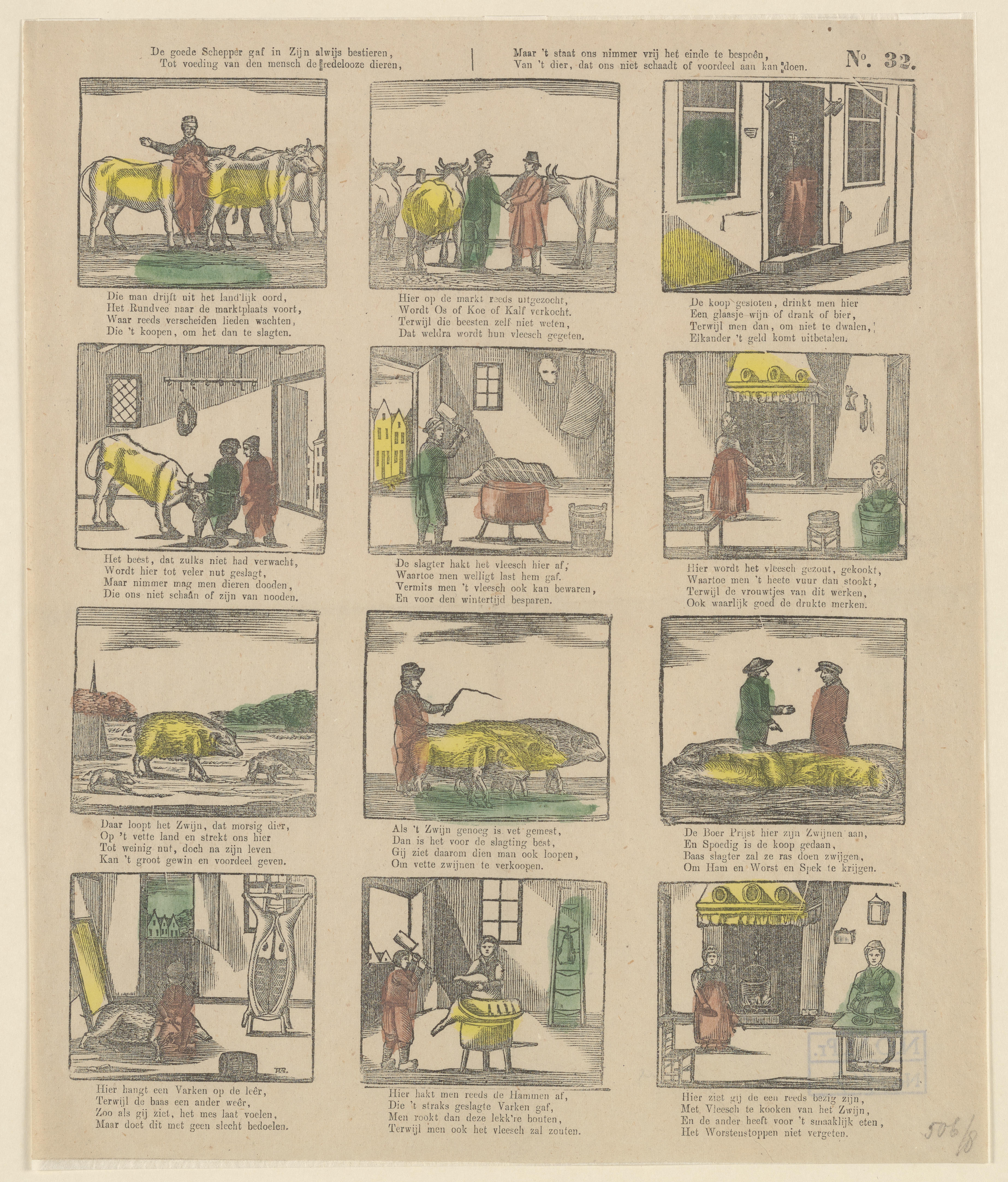 Onderwijsprent met diverse handelingen - XVIII.