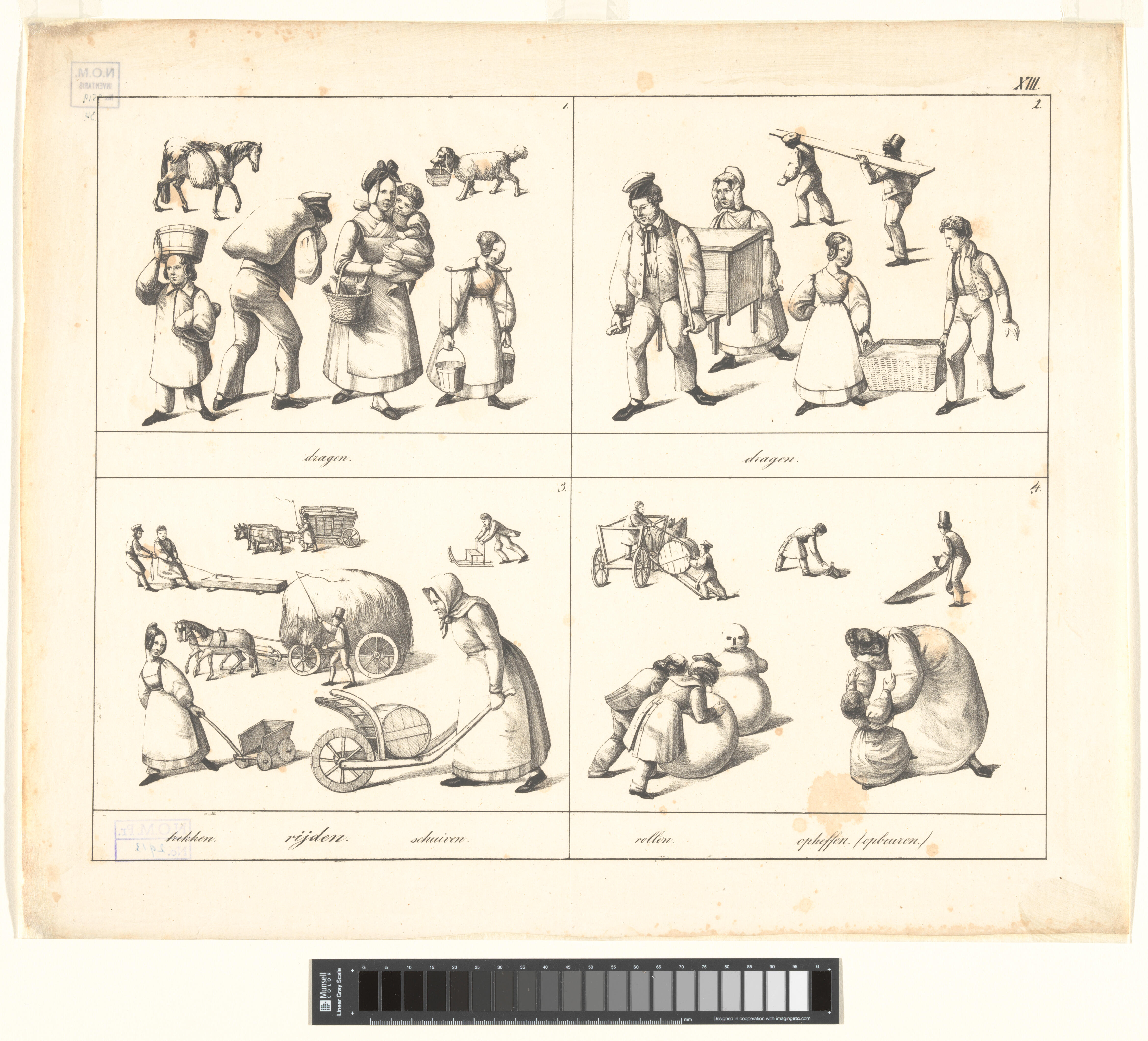 Onderwijsprent met verschillende handelingen - XIV.