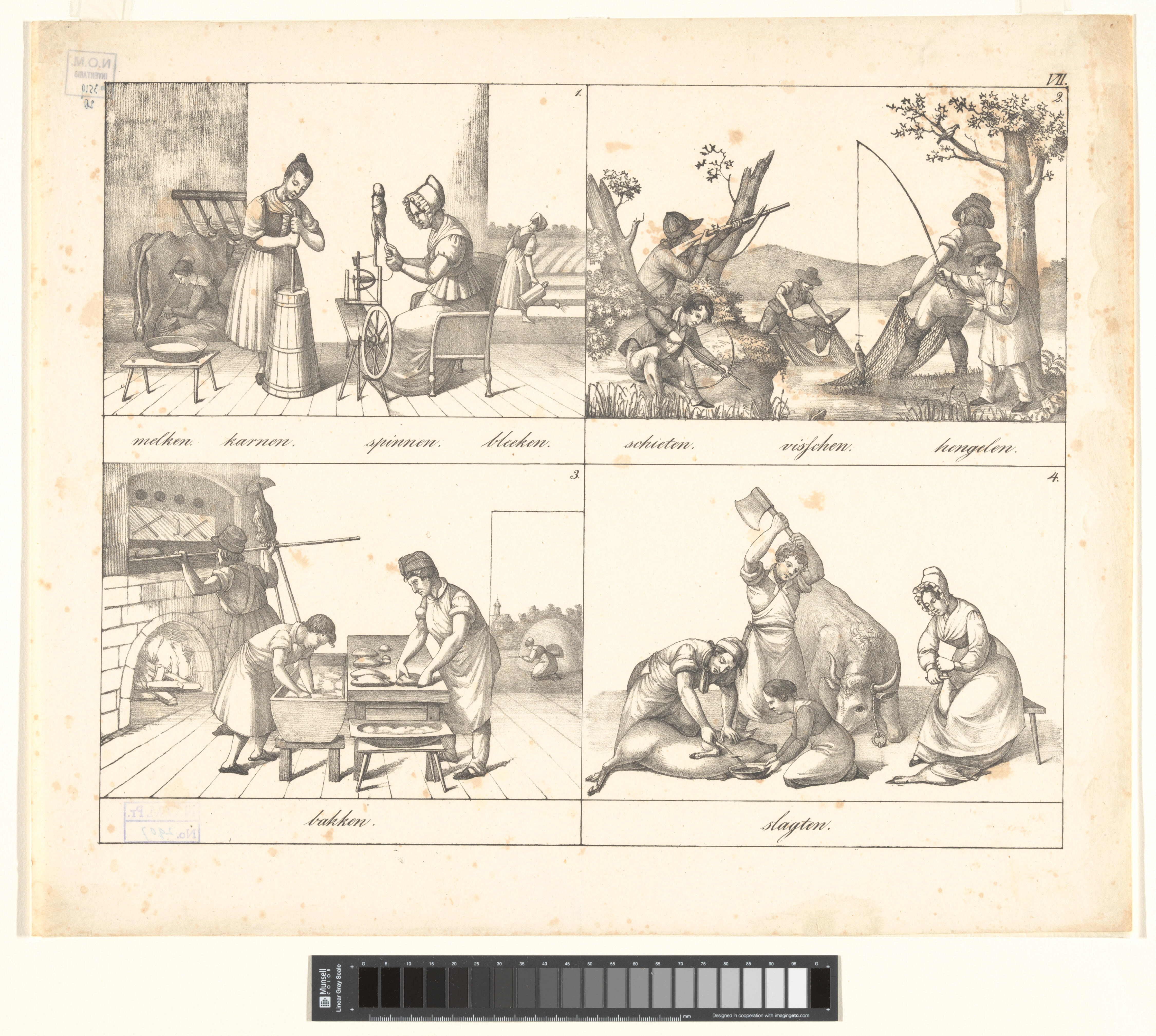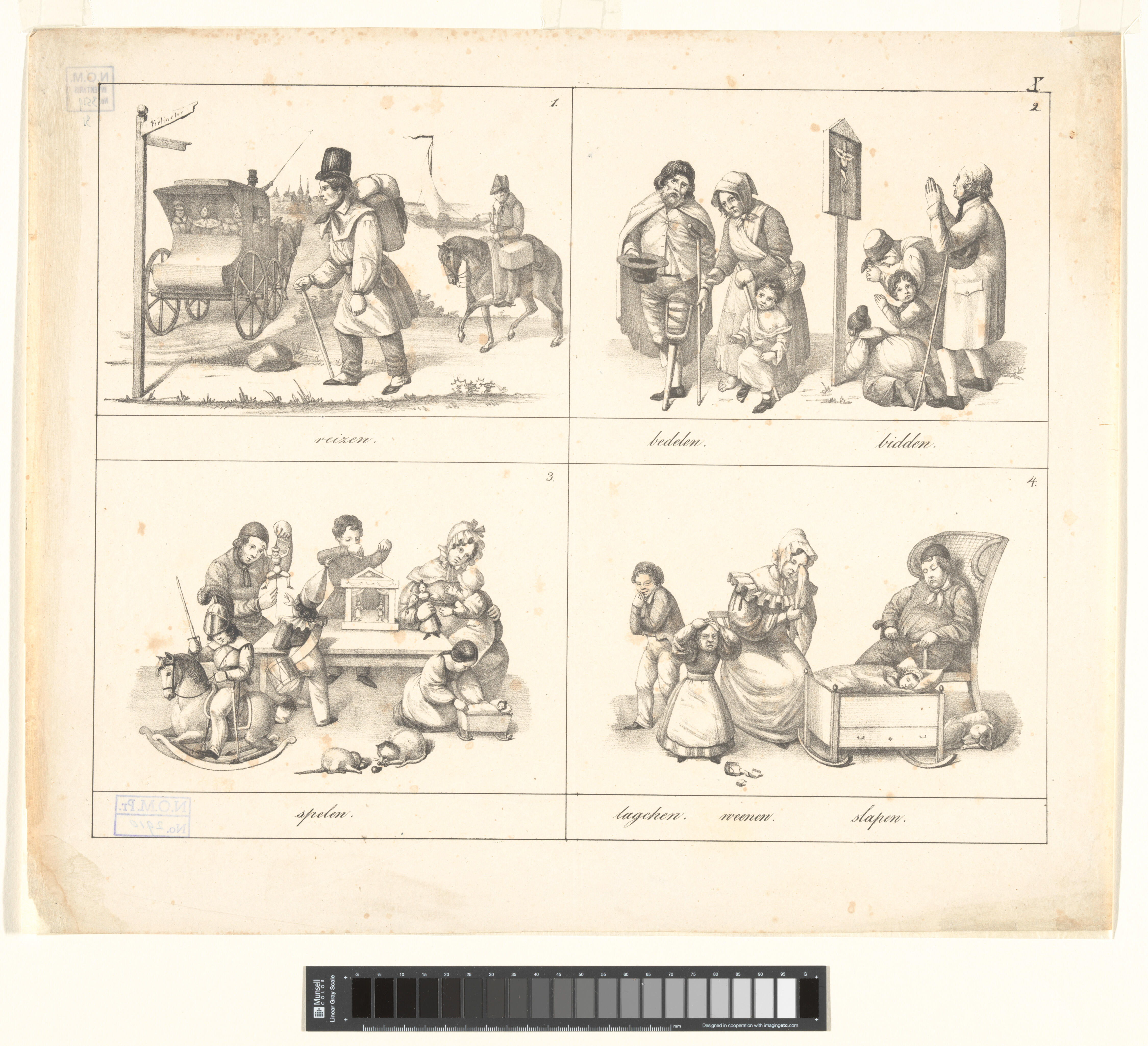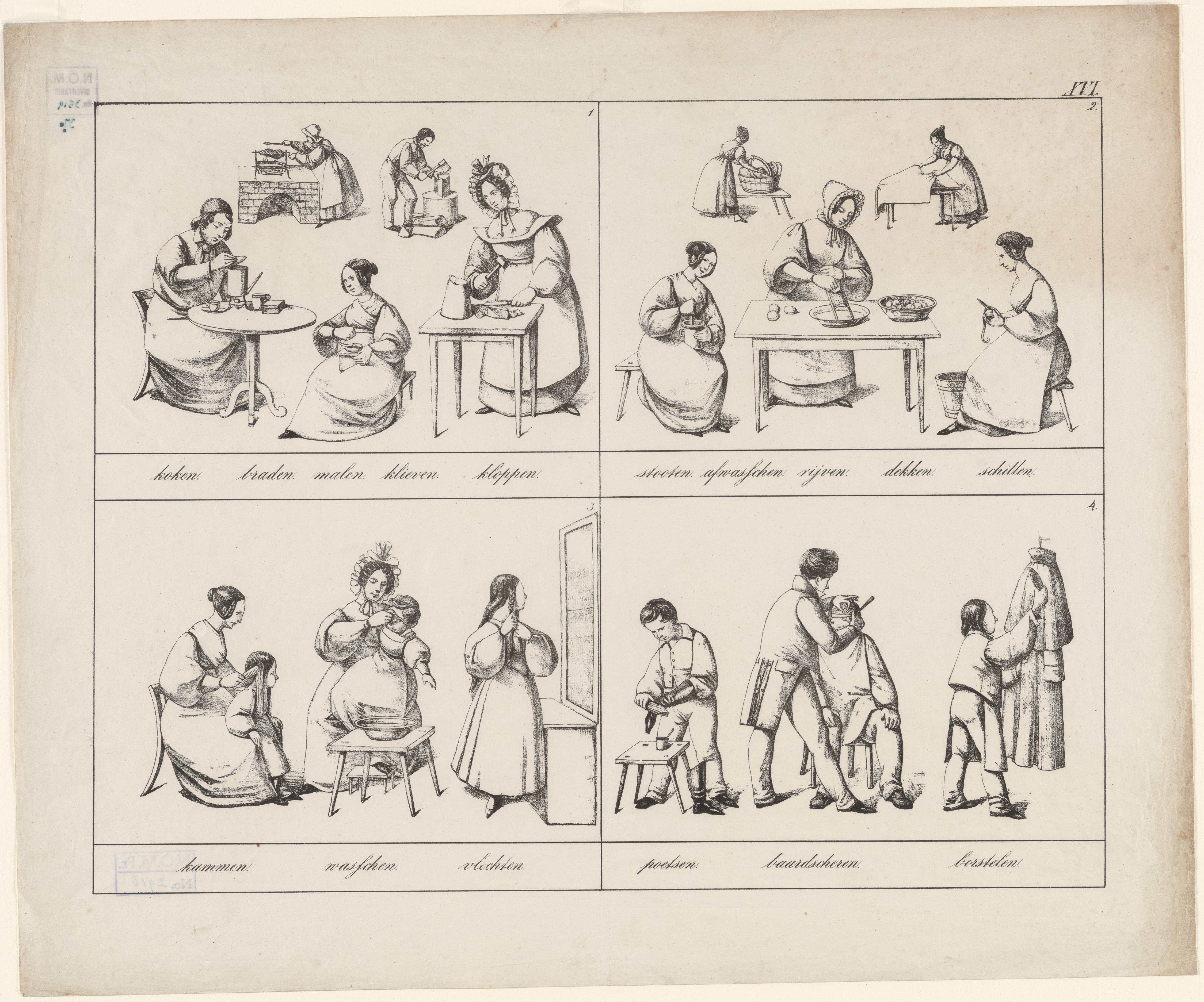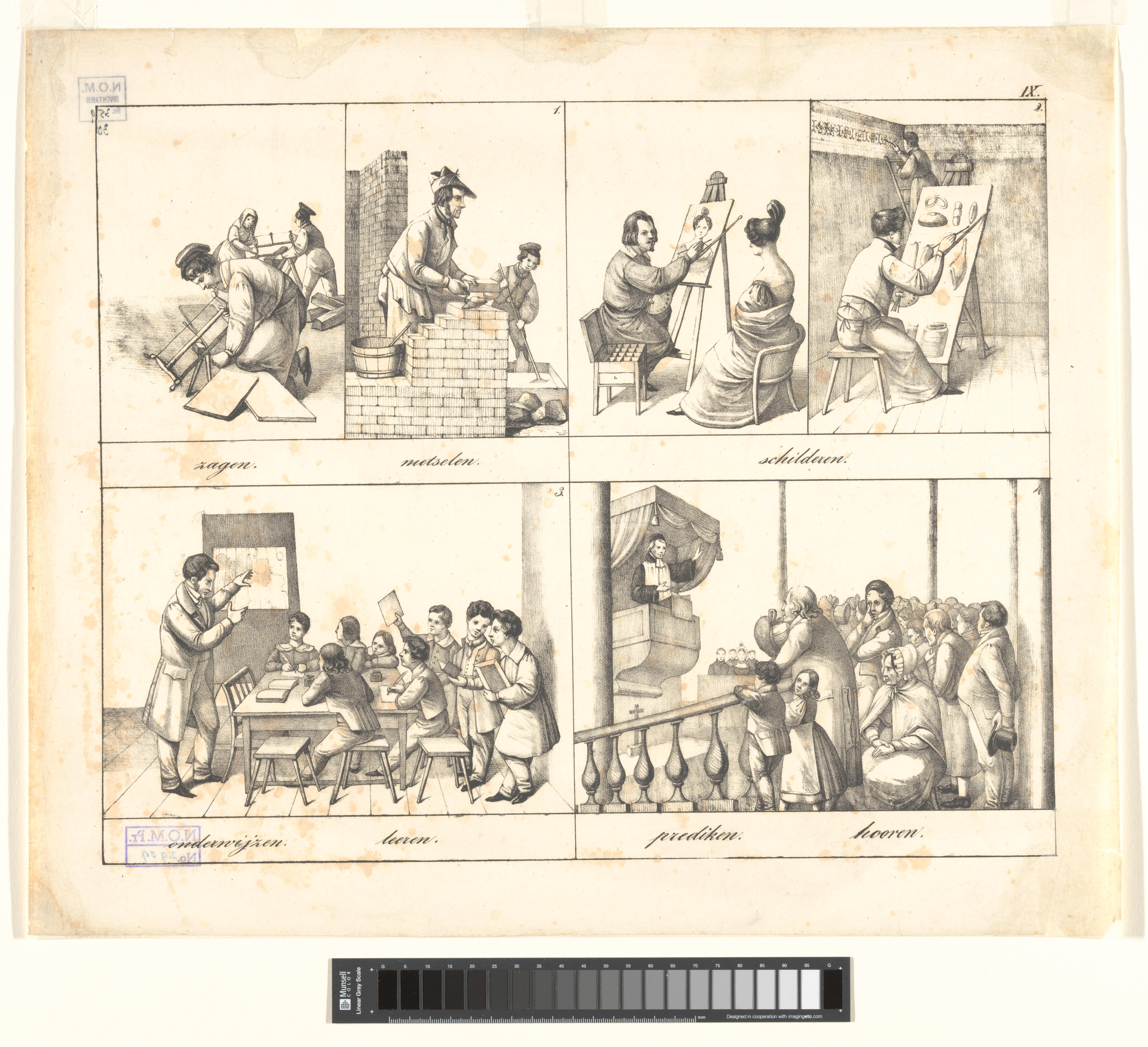 Onderwijsprent met verschillende bezigheden - IV.
