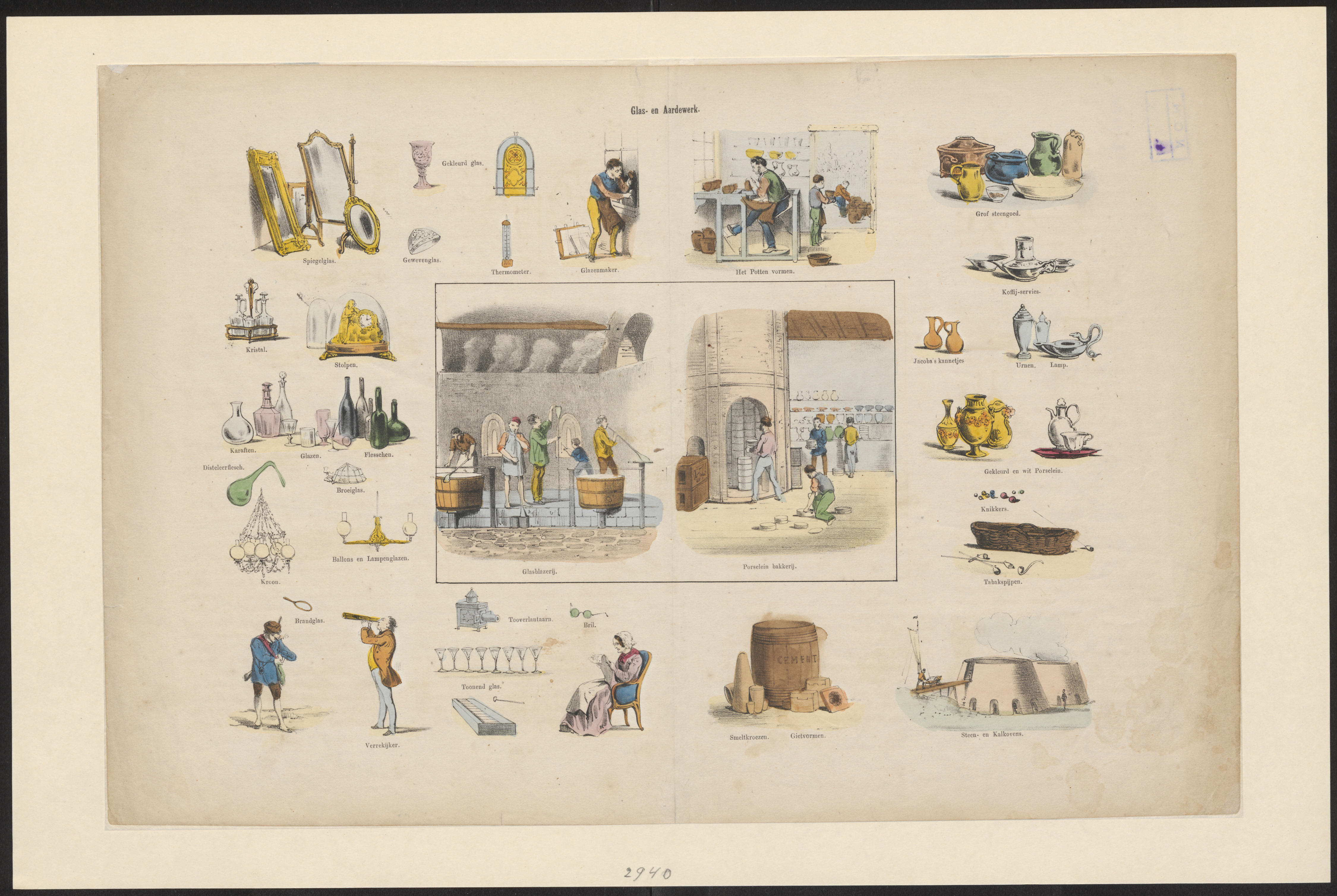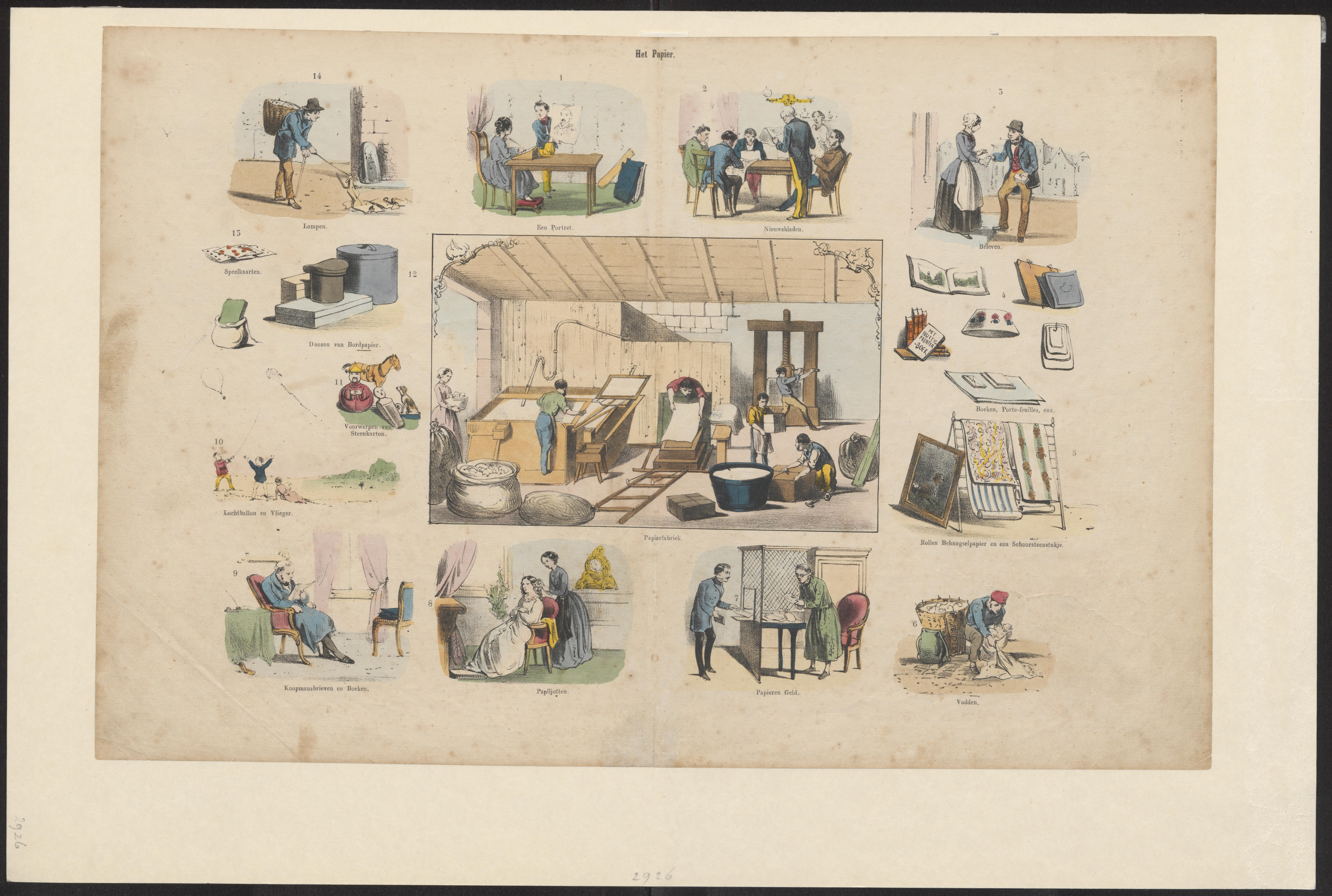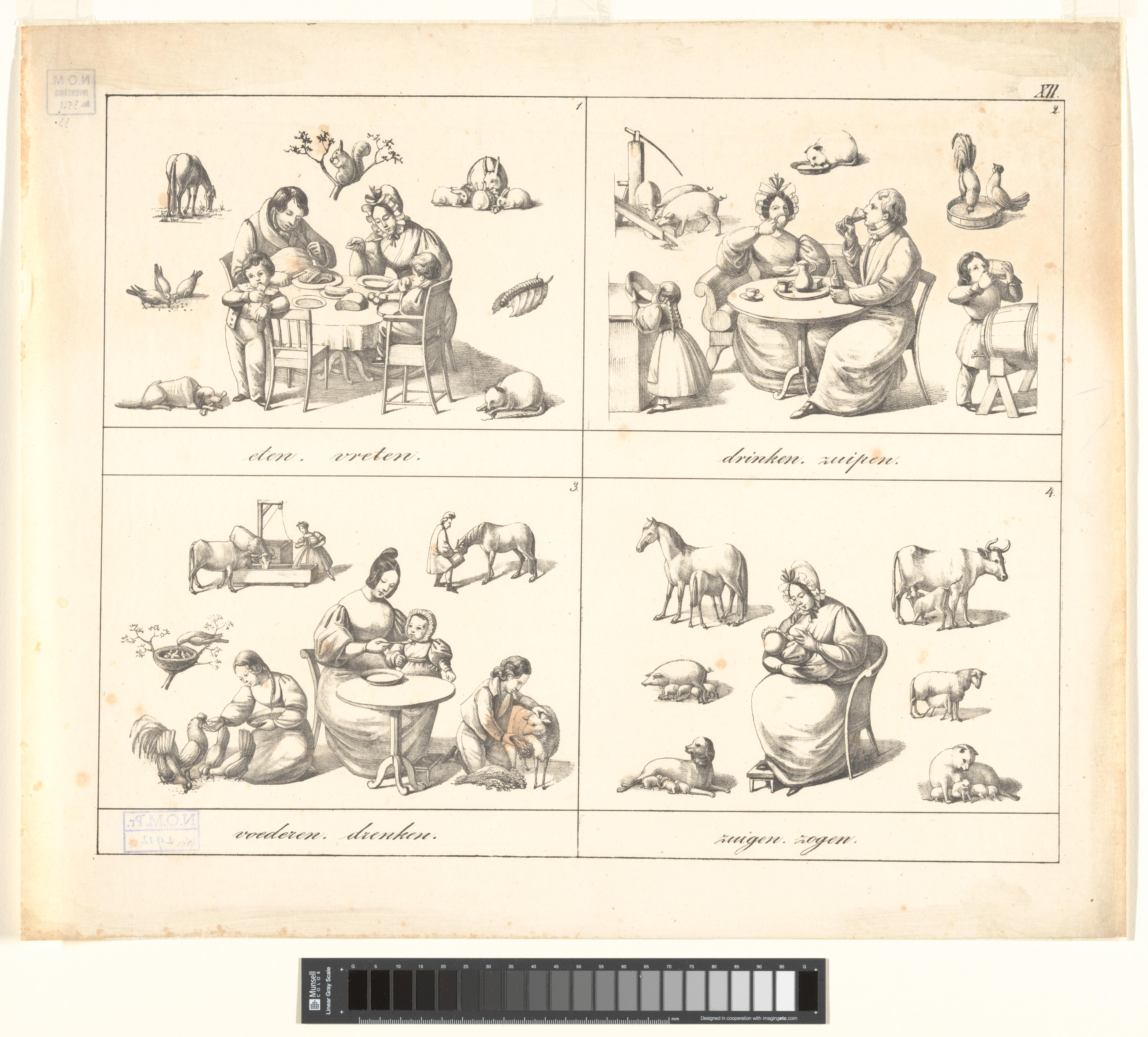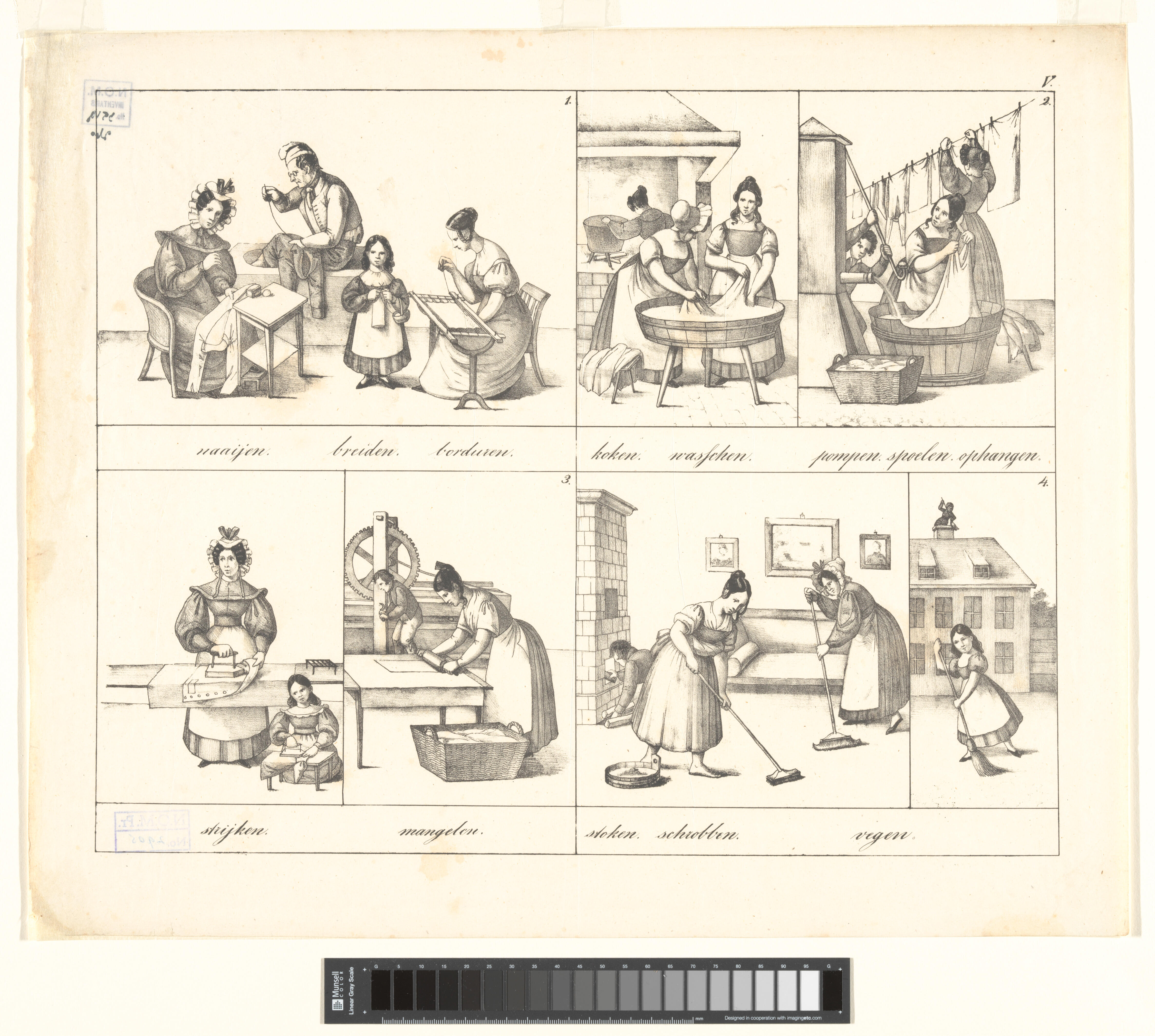 Onderwijsprent met verschillende bezigheden - IV.