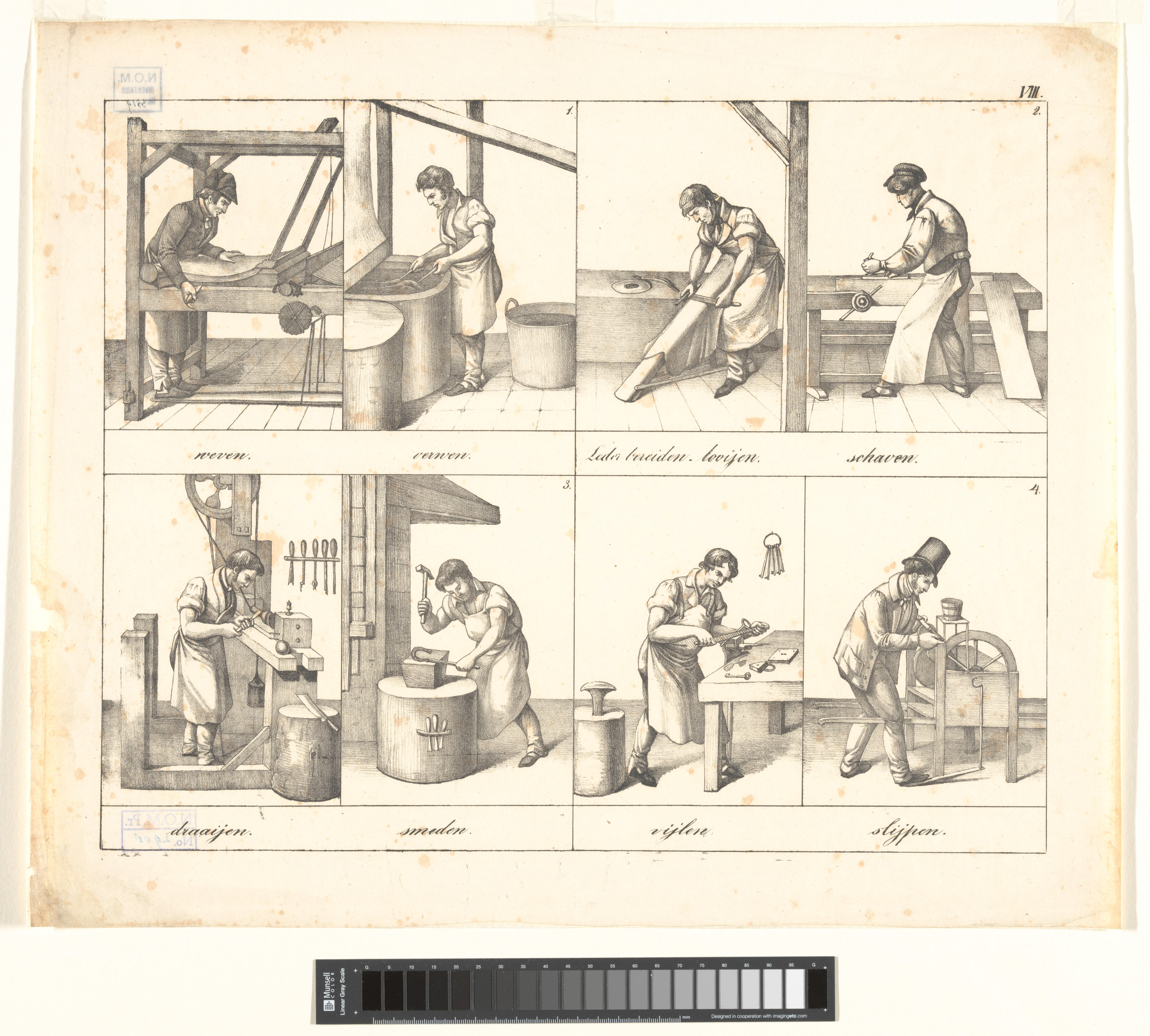Onderwijsprent met ambachten. - VIII.