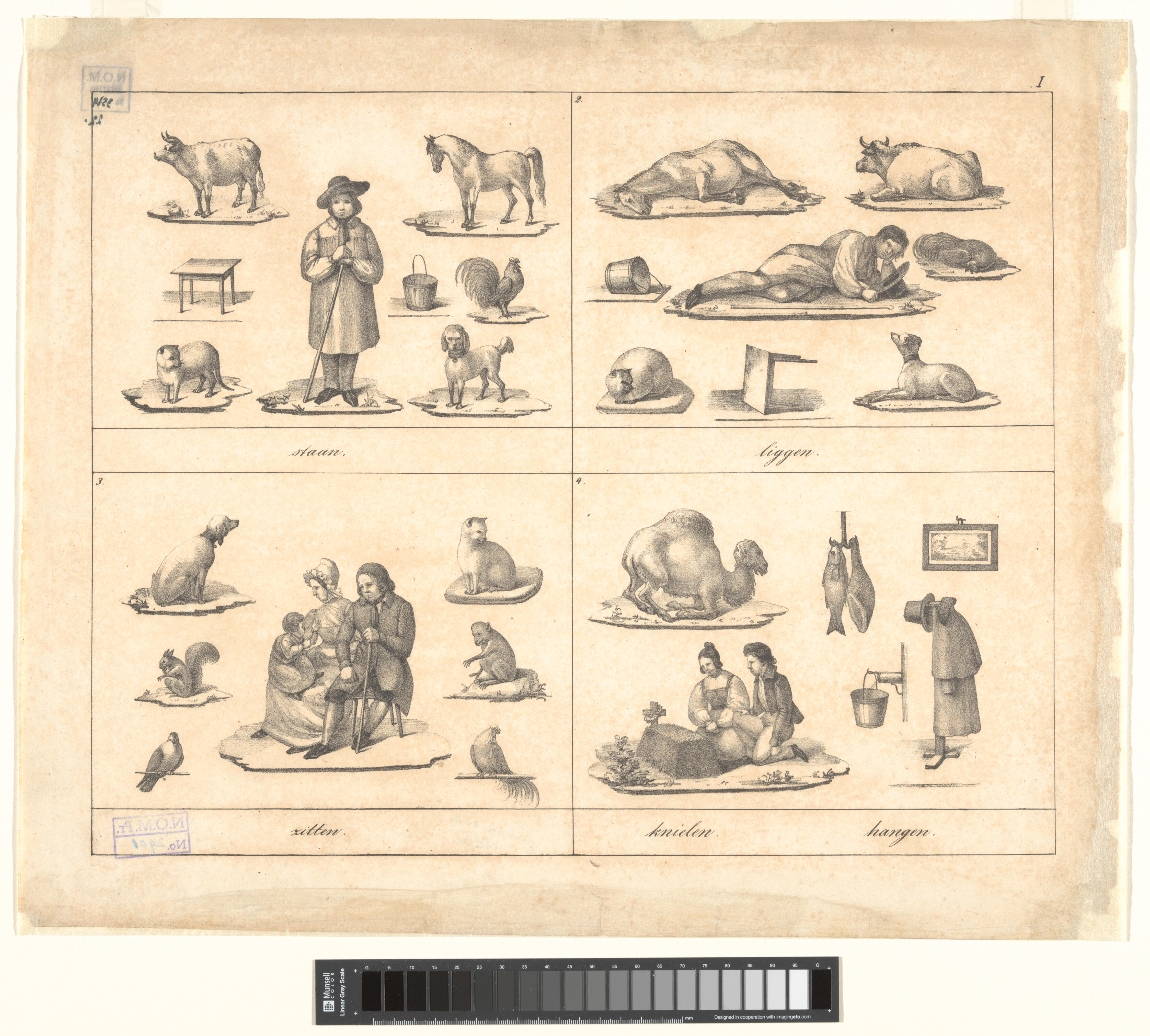 Onderwijsprent met menselijke en dierlijke beweginge...