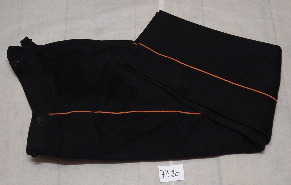 zwarte uniformbroek met oranje bies langszij: onderd...