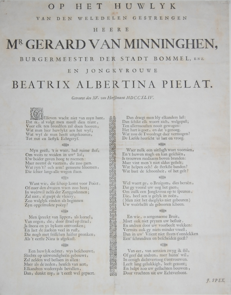 Lofdicht in tien verzen op het huwelijk van Mr. G. v...