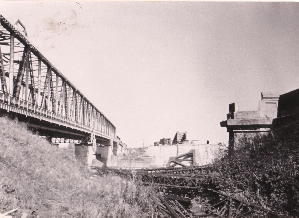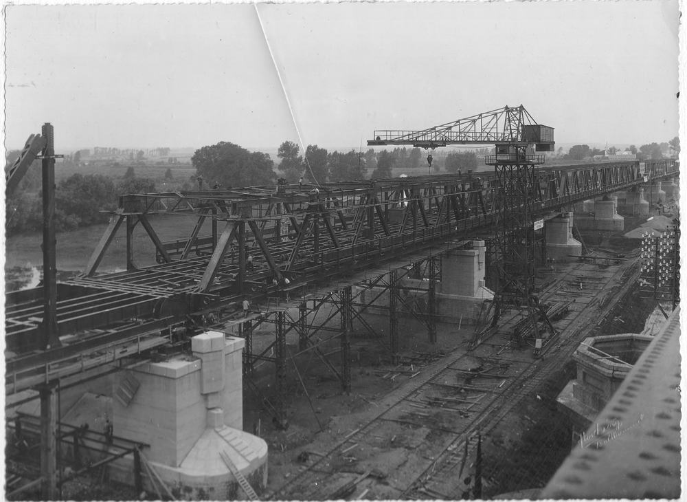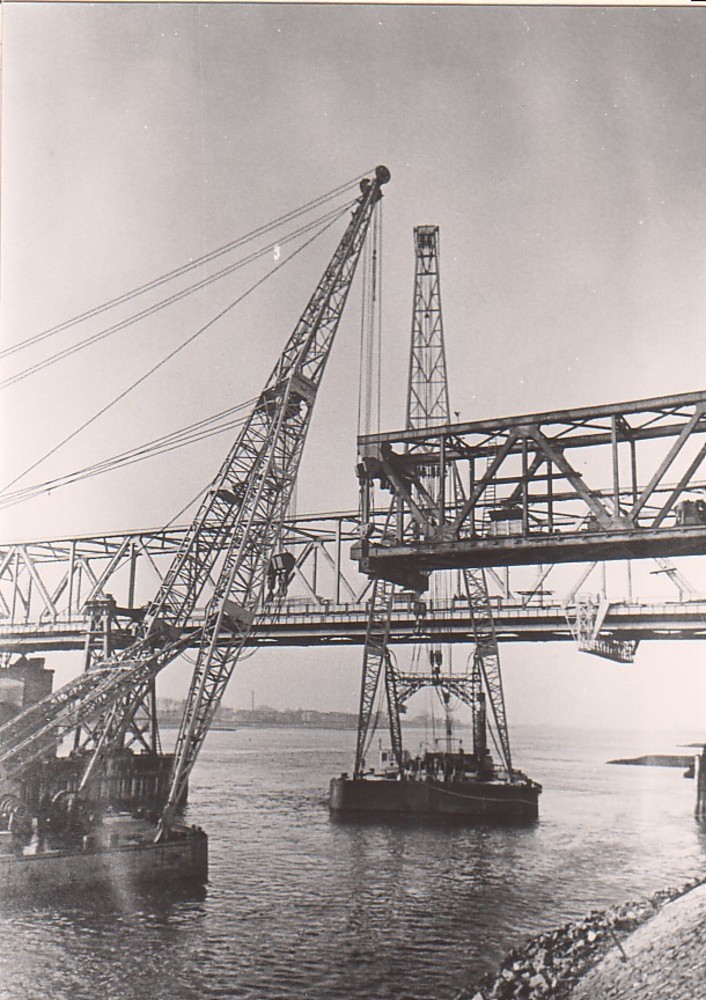 Bouw verkeers en spoorbrug over de waal bij Zaltbomm...