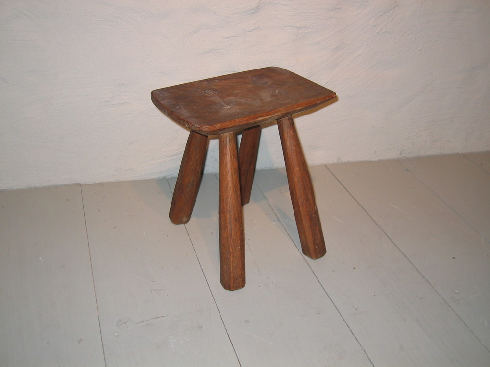 Houten krukje op vier poten met vierkant zitvlak, af...