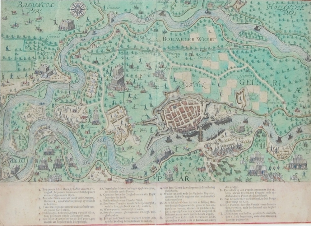 plattegrond en profiel van Zaltbommel met stadswapen...