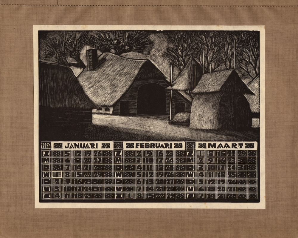 Kalender 1936 met houtgravures van J. Bezaan