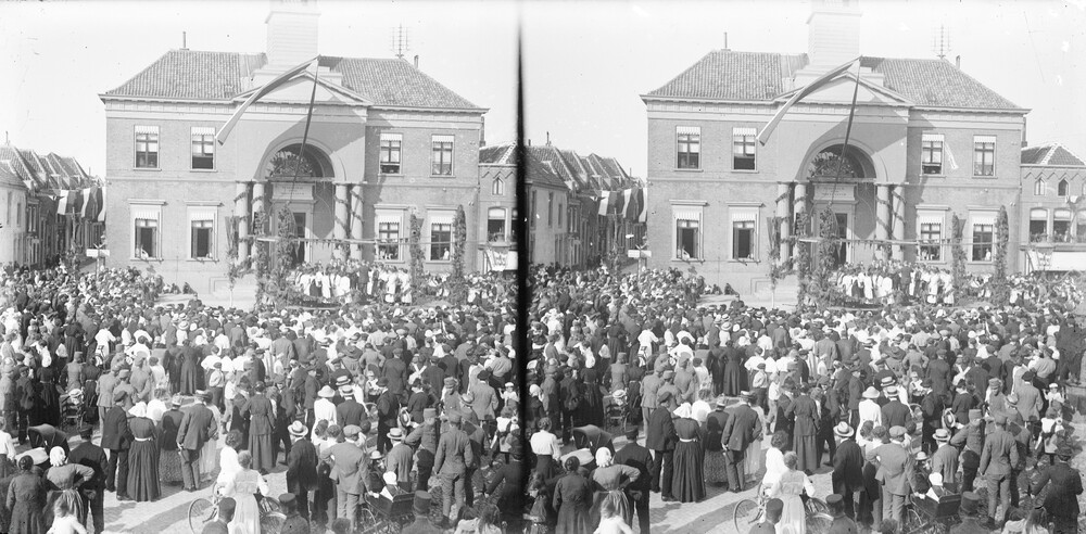 Groepsfoto van de installatie van burgemeester Mr. H...