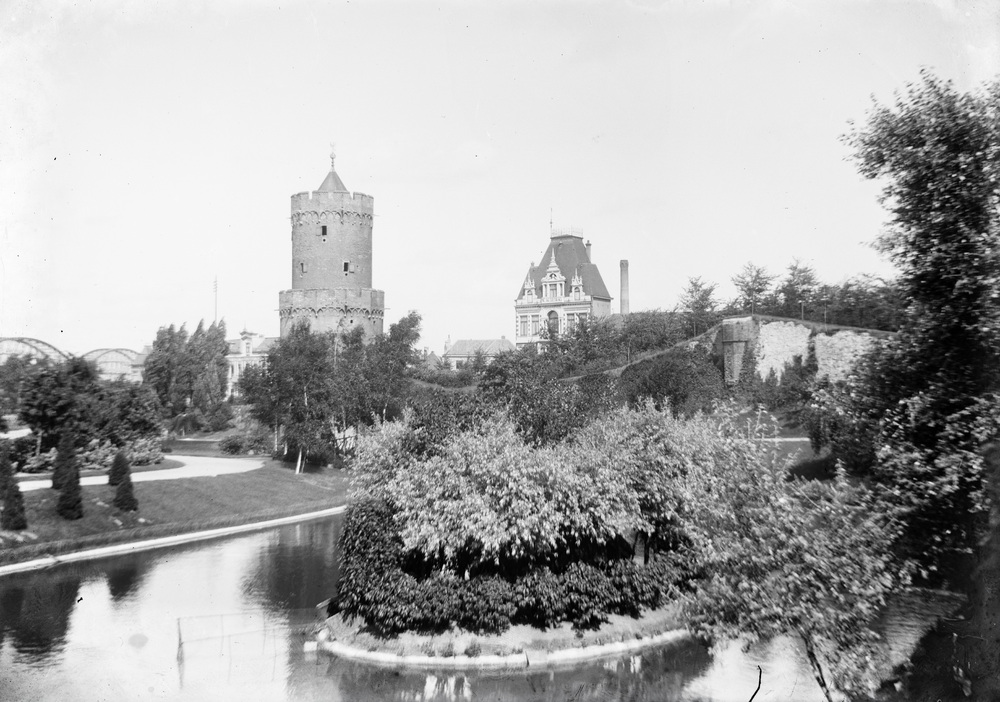 Kronenburgerpark in Nijmegen met kruittoren en vijver