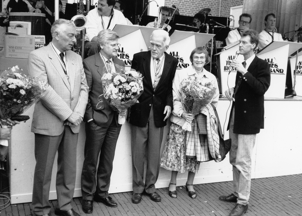 Oud-wijkagent Slabbekoorn en burgemeester Van Boeije...