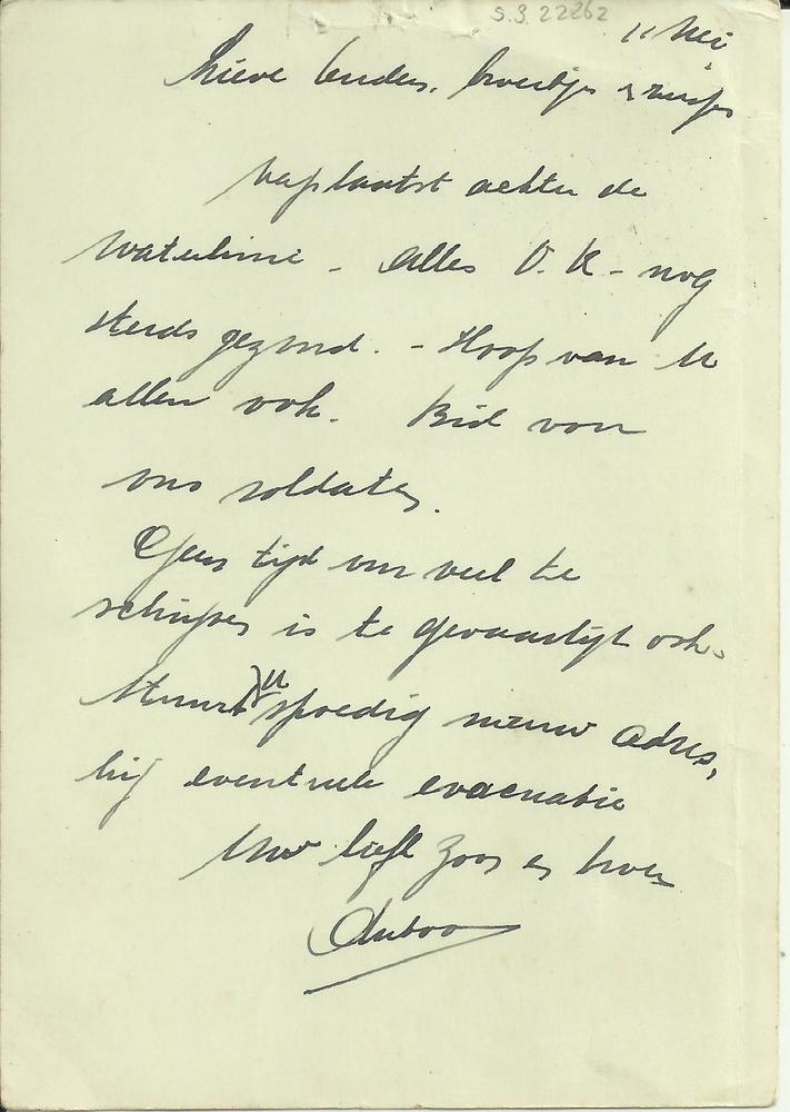 Kaart van Antoon Jeuken aan familie, 11 mei 1940