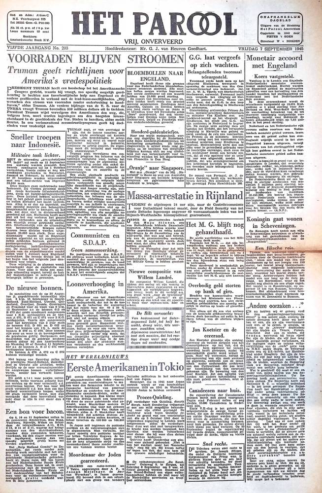 Het Parool, 7 september 1945