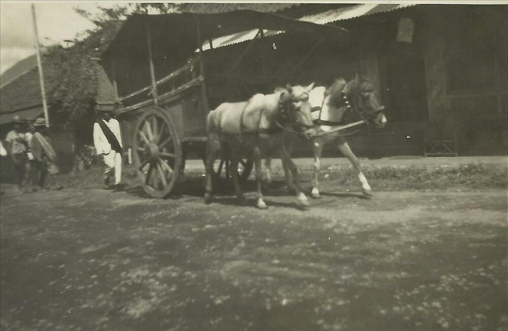 Nederlands Indië; optocht, huifkar, paard