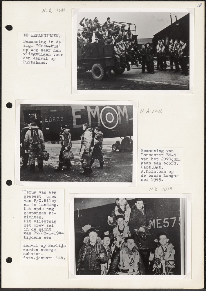 Foto van bommenwerper bemanningen in vrachtwagen. Te...