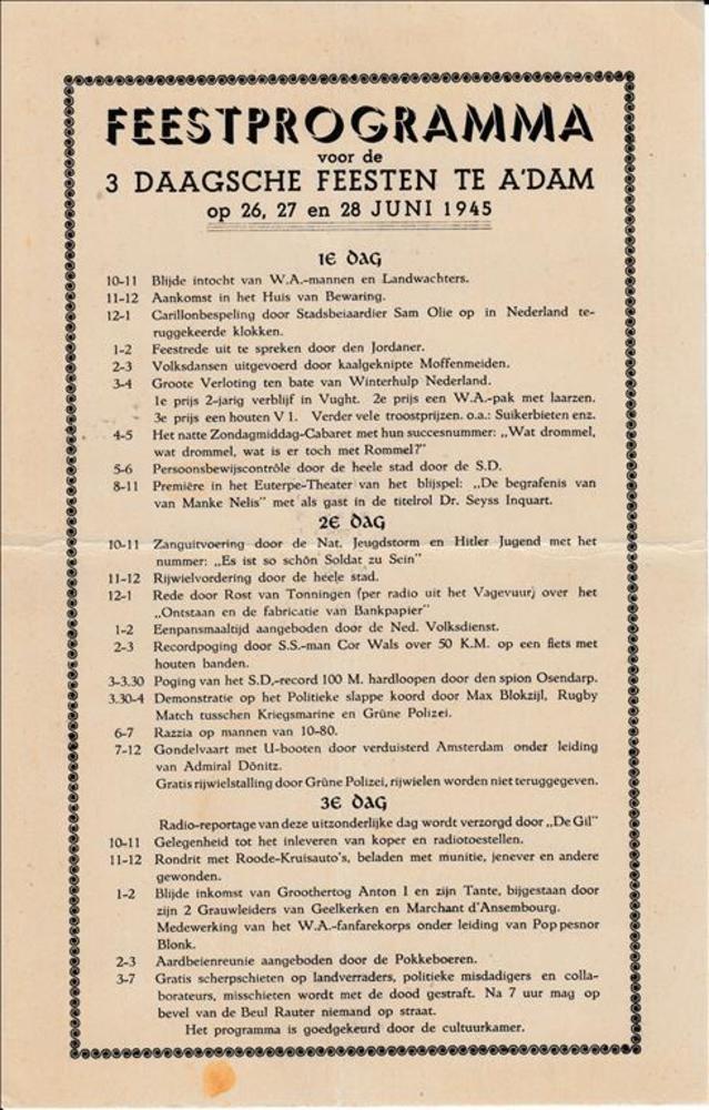Feestprogramma, 3 daagsche Feesten te A'DAM