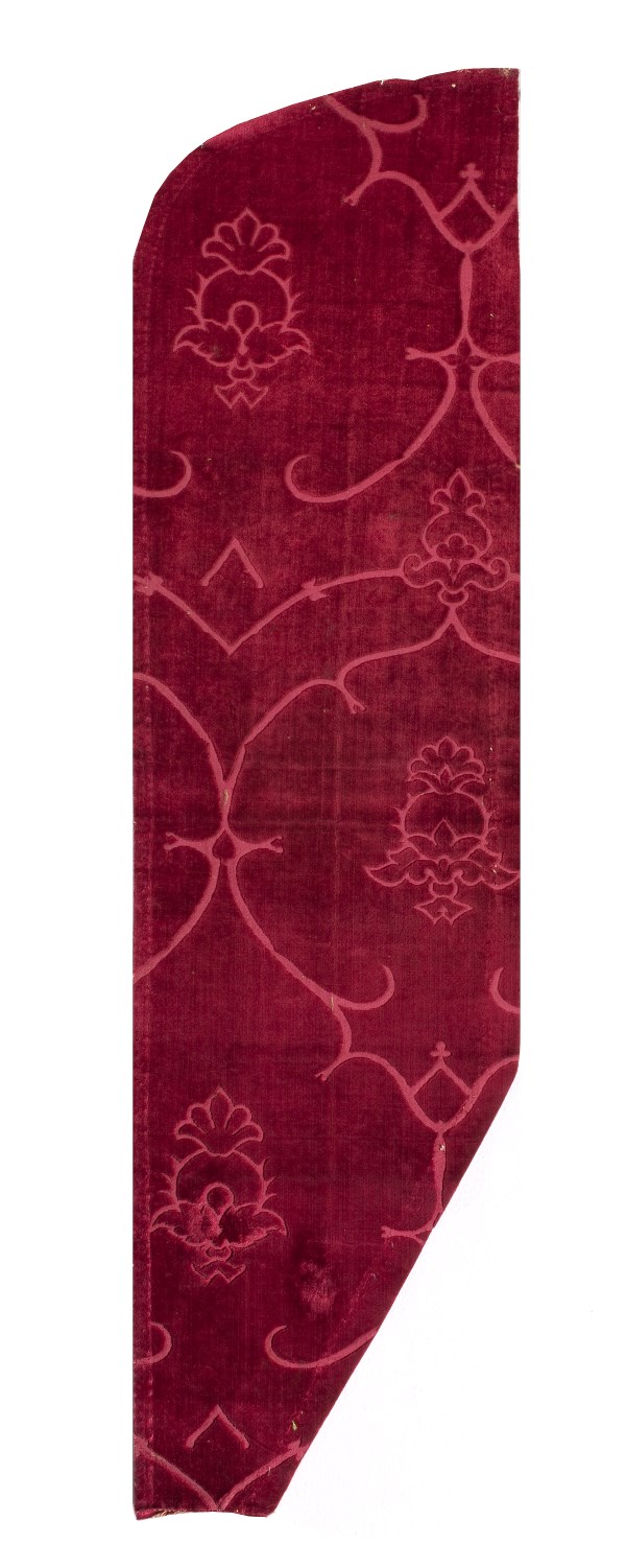Rood gesneden fluweel met spitsovale velden waarin b...