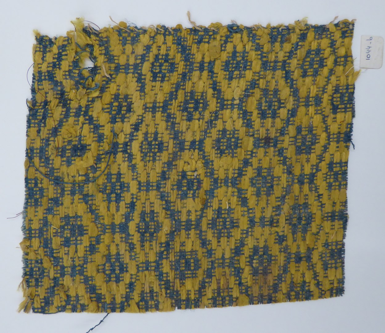 Blauw, versleten fluweel met kruisjes en ruiten met ...