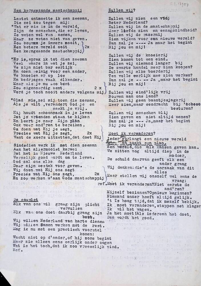 Vel met getypte teksten van liederen: Een kerngezond...
