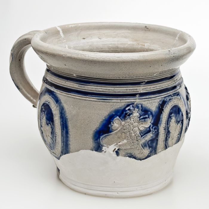 Steengoed Westerwald kamerpot met leeuwen en ovale c...