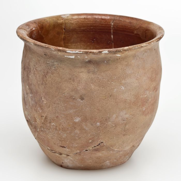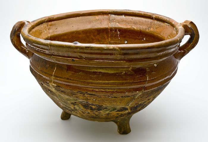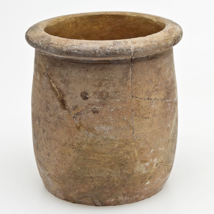 Aardewerk kookpot, wijd model met rechte zijwand, dr...