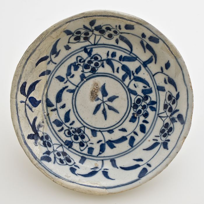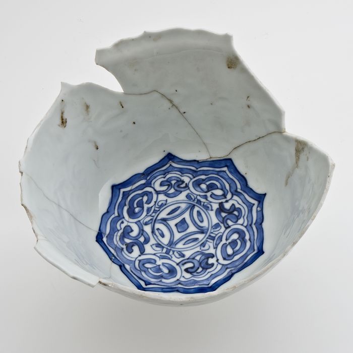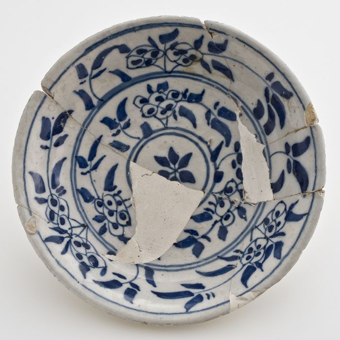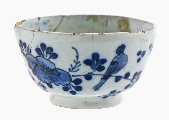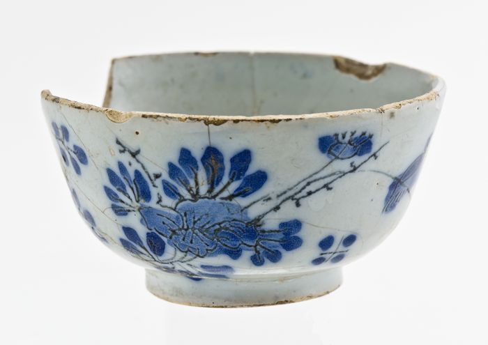Kleine faience theekom, kom met blauw decor in Aziat...