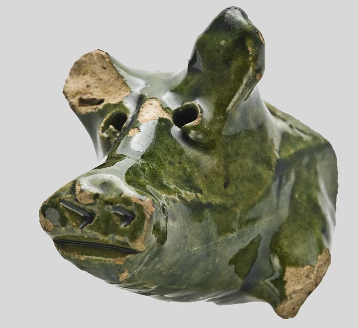 Fragmenten van aardewerk spaarvarkens, twee snuitfra...
