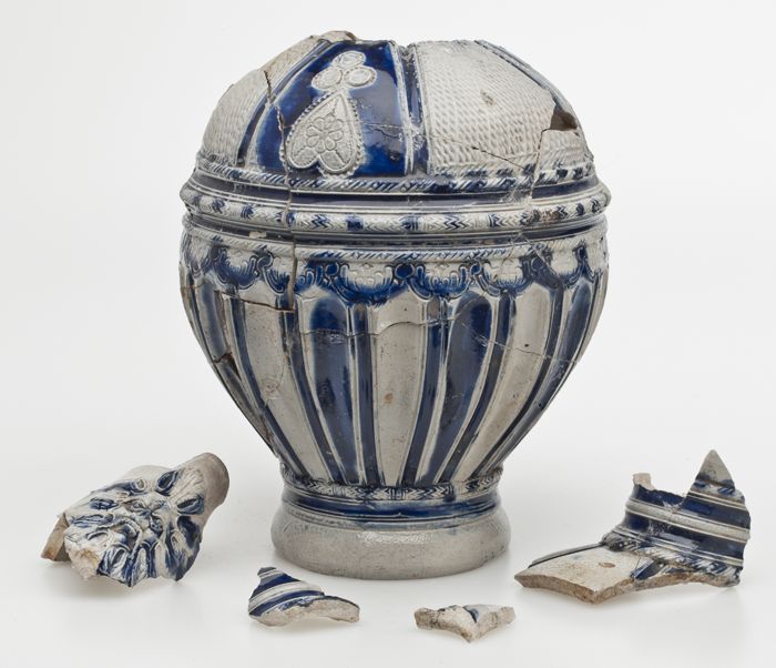 Fragment Westerwald kruik, steengoed met ovale carto...