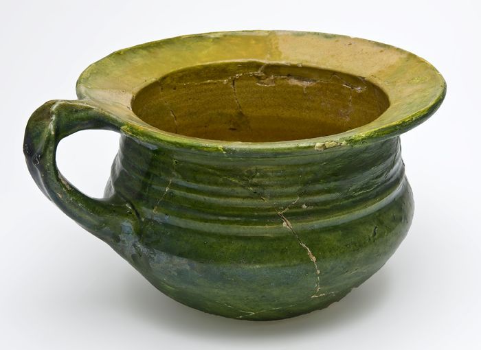 Groene kamerpot met gewelfde bodem, staand oor en br...