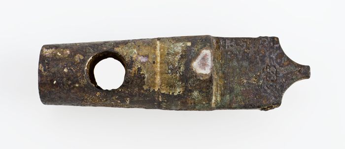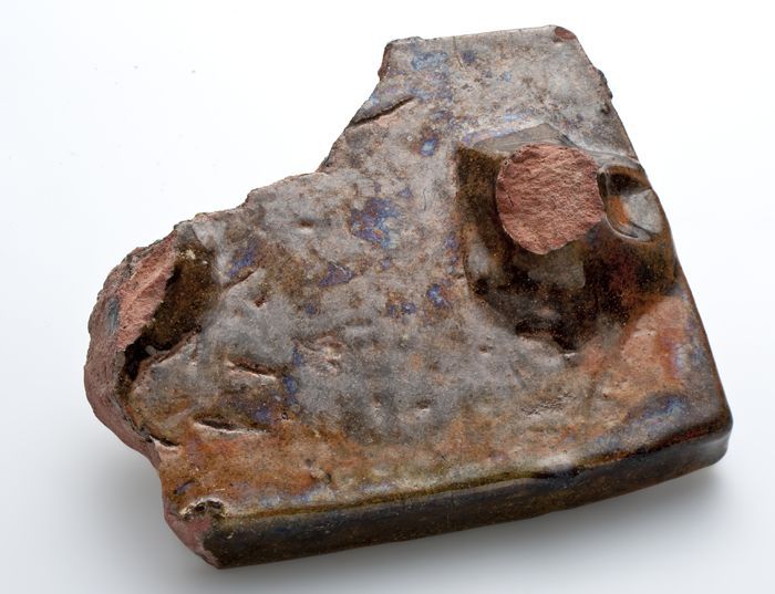 Fragment van aardewerk strijksteen, strijkbout, rode...