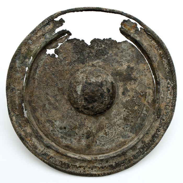 Tinnen schaaltje of deksel met ranken en bloemversie...