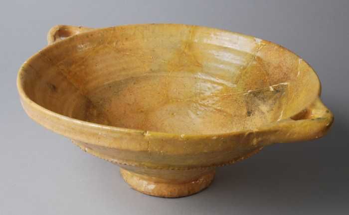 Gele geglazuurde schaal met twee oren, trechtervorm,...