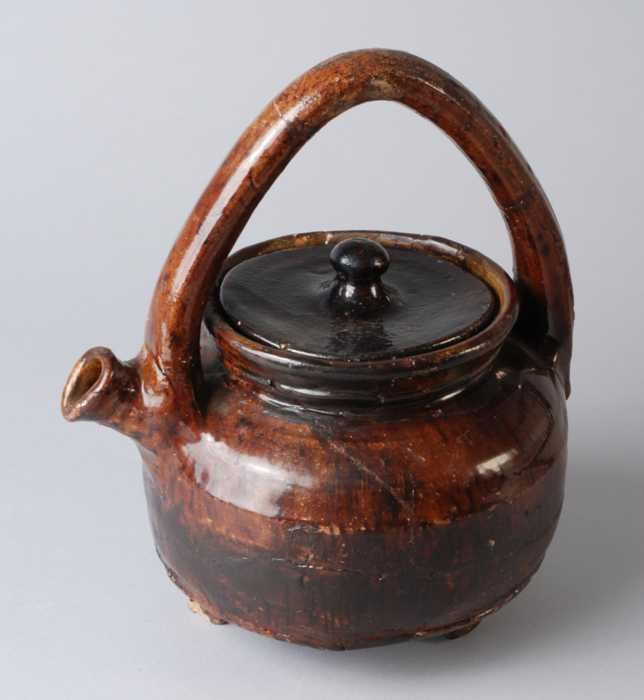 Bruine bovenkant van waterkan, met oor en schenktuit