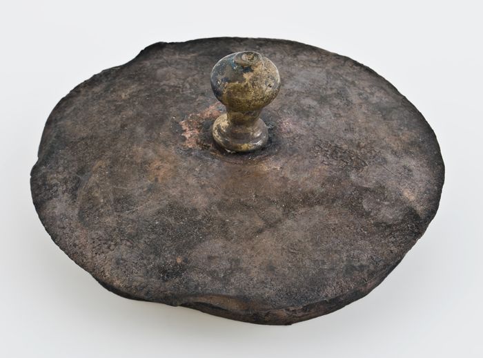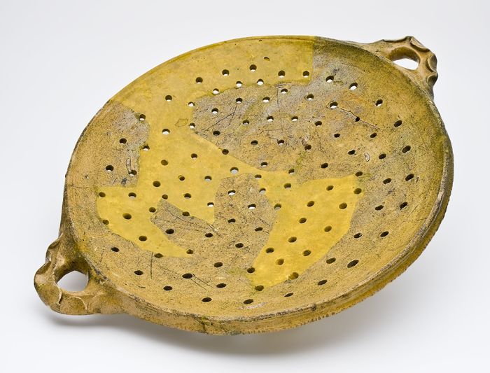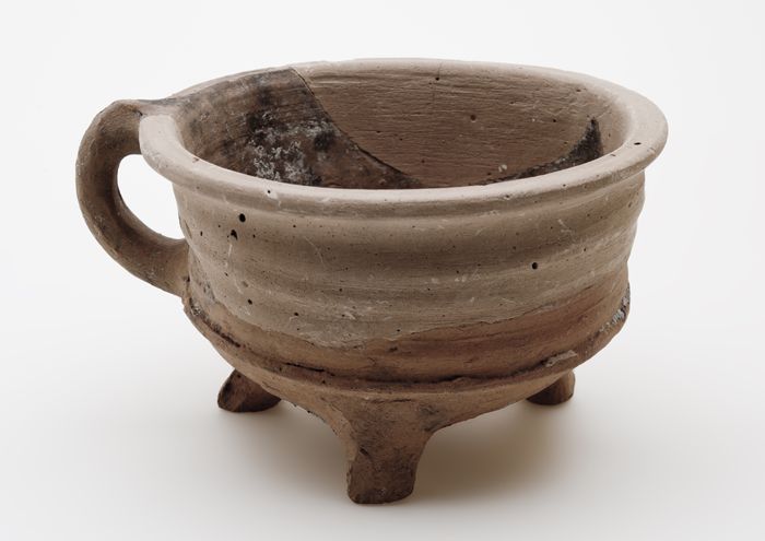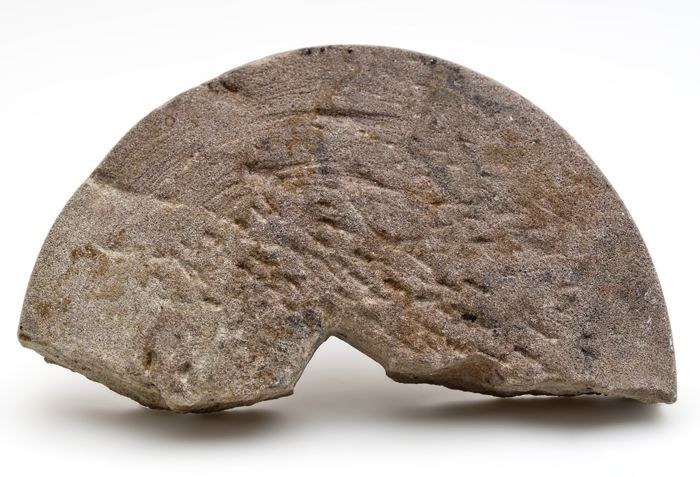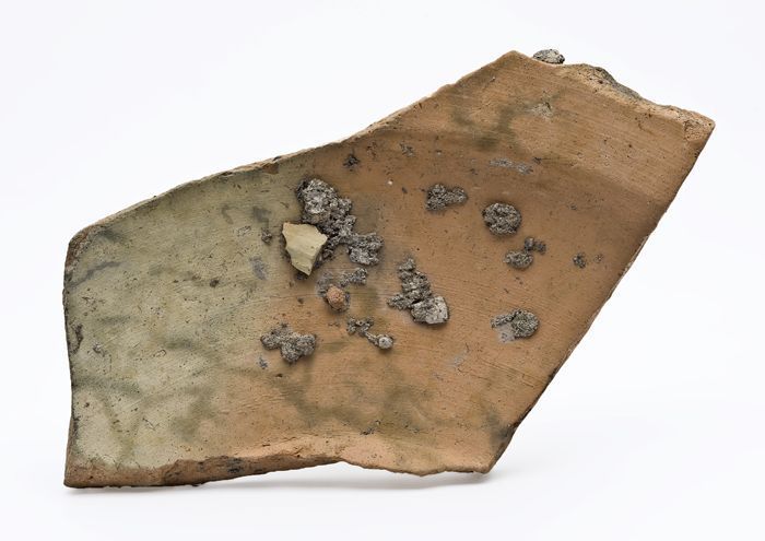 Aardewerk test, rond model, ongeglazuurd, met worsto...