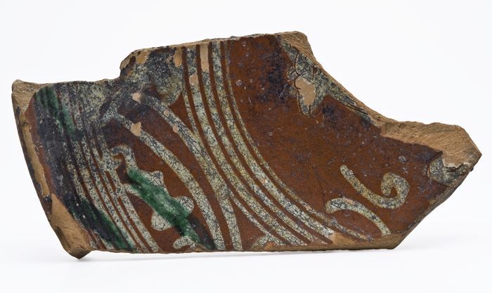 Fragmenten Werra aardewerk, slibtechniek en sgraffito