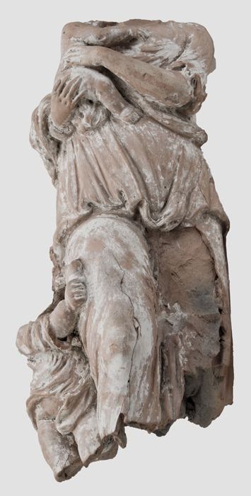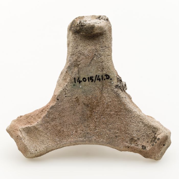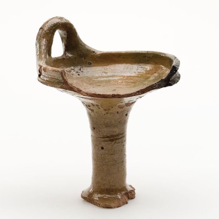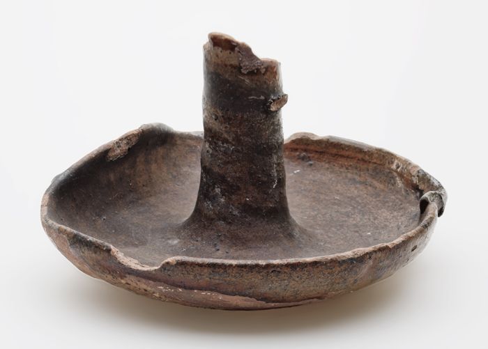 Fragment aardewerk zoutvat of kandelaar, terracotta