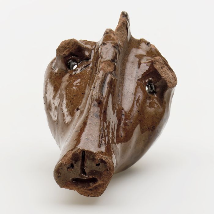 Fragment van rood aardewerken spaarvarken, de snuit