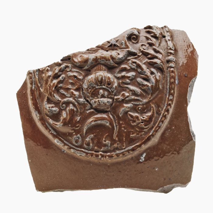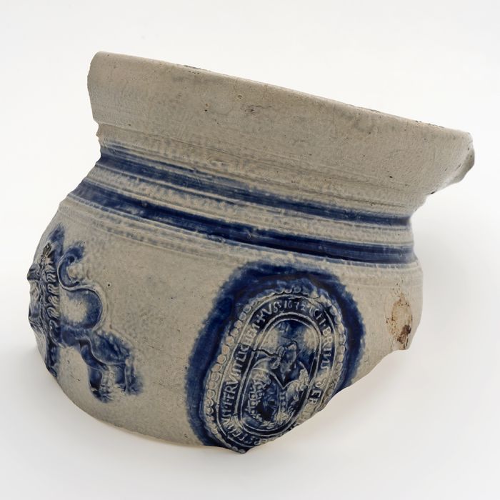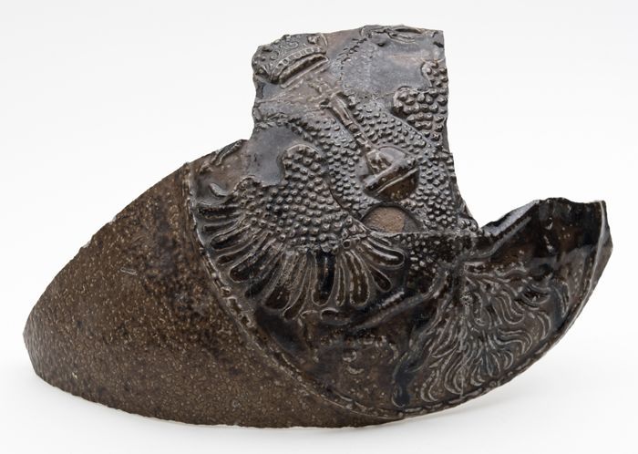 Fragment steengoed kruik met cartouche, bruin geglaz...