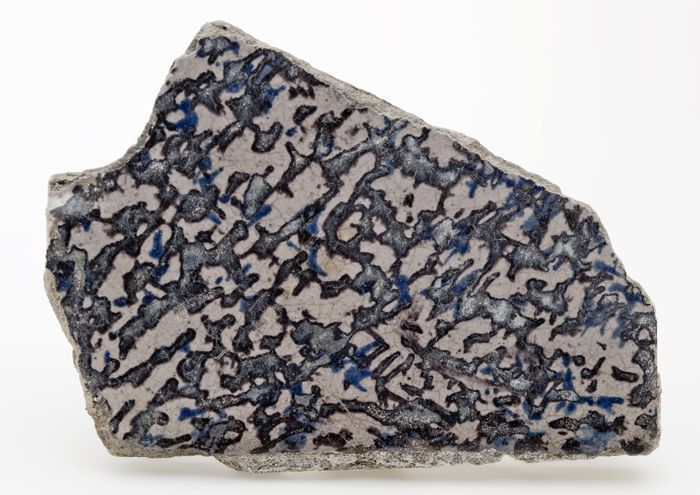 Fragment steengoed kan met blauw en grijs glazuur, g...